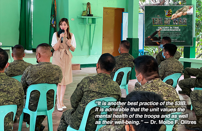 “I could see the eagerness of the participant-troops to share their experiences and their problems during our group sessions. Being able to vent out their emotions is therapeutic in itself,” Dr. Moibe F. Olitres, the mental health consultant of Best Life Project said. “It is another best practice of the 53IB. It is admirable that the unit values the mental health of the troops and as well as their well-being,” she said.